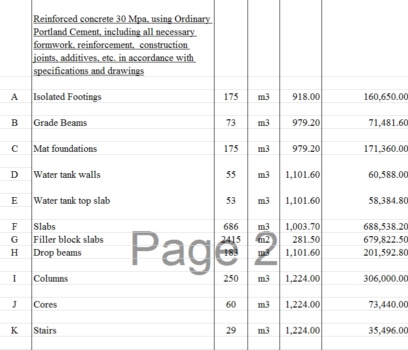 Bill Of Quantities Template Excel